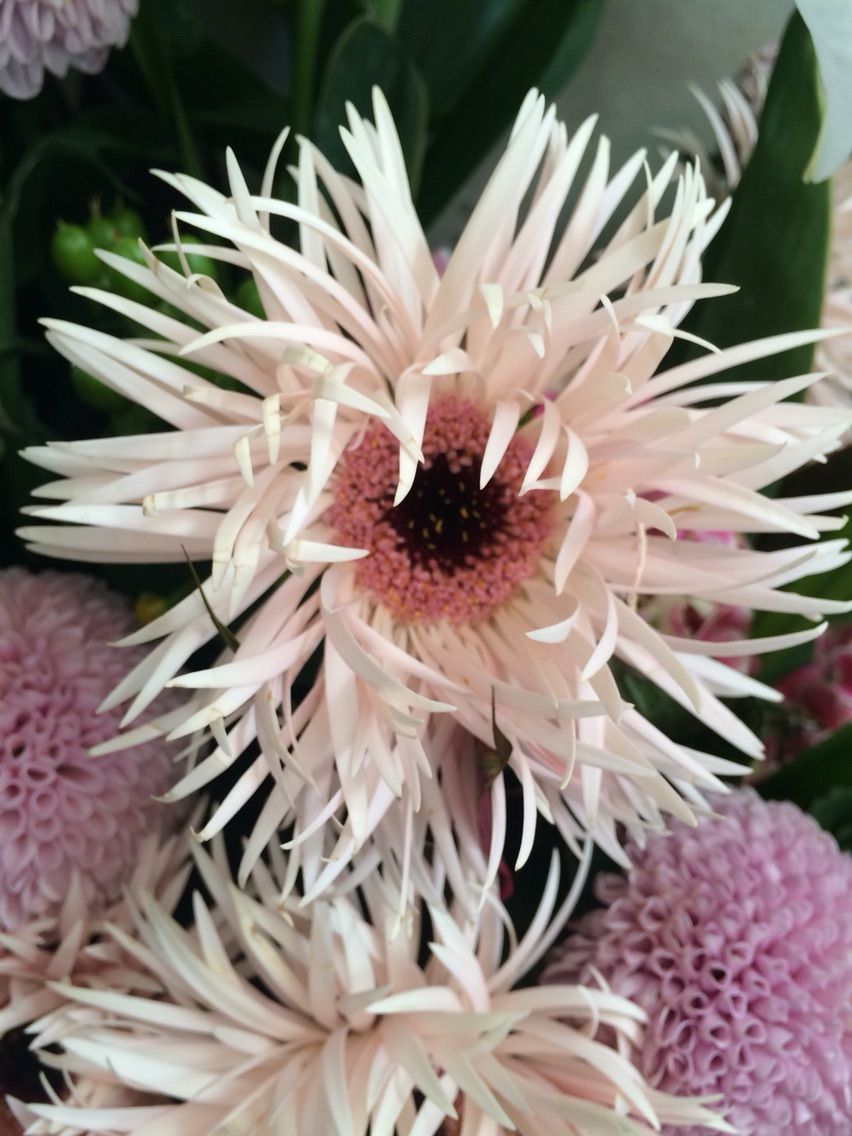 花びらの形がふつうのガーベラと違いますね!これはスパイダー咲きと言うそうです。ふつうのガーベラより、シャープな印象。