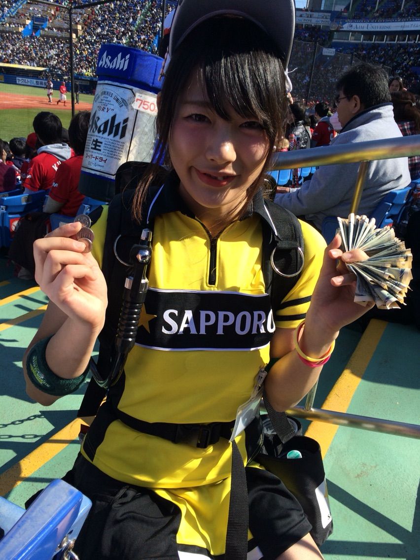 試合の合間に、気になったビールの売り子さん。