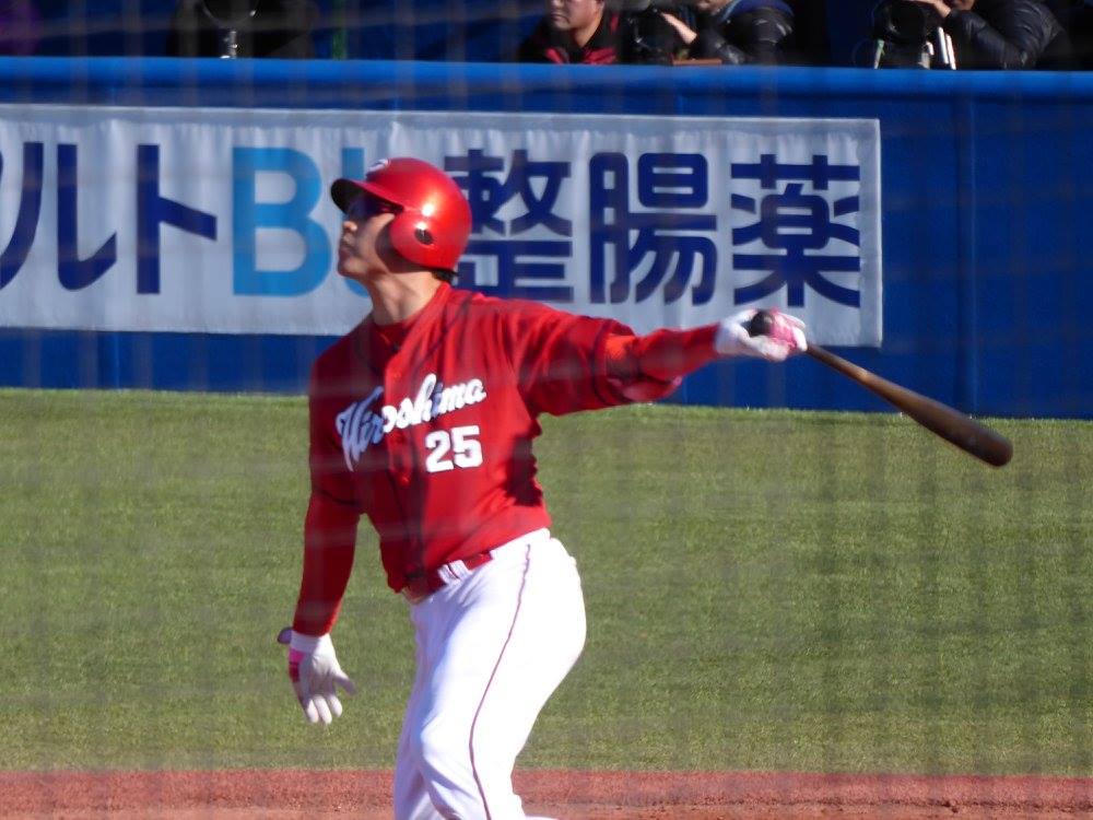 それなのに、相変わらず点数効率がよくない、我がカープ…。特に、館山が降板したあとの投手からはヒットも出てなかったところ、その雰囲気を払拭してくれたのは、やっぱりこの人のホームランでした!!