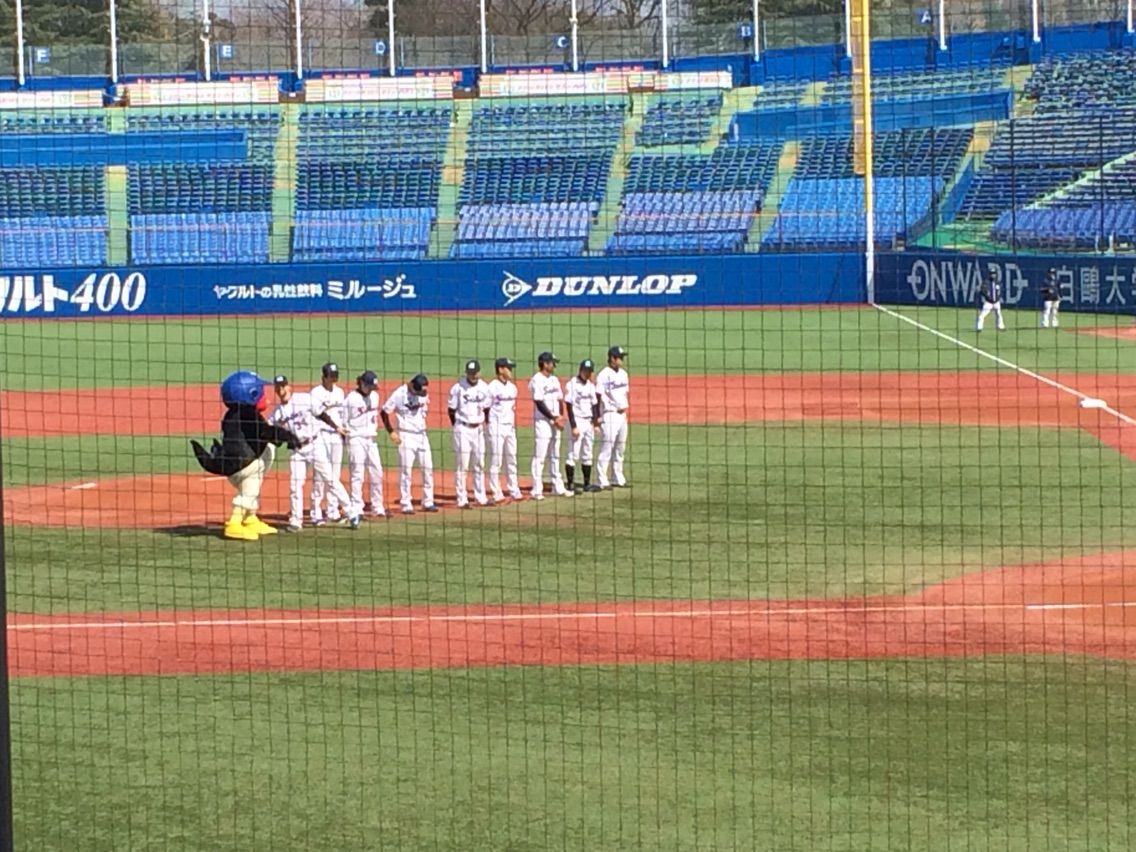 そんなわけで今日は応援団も内野に入っていて、ちょっと大学野球っぽかったです。