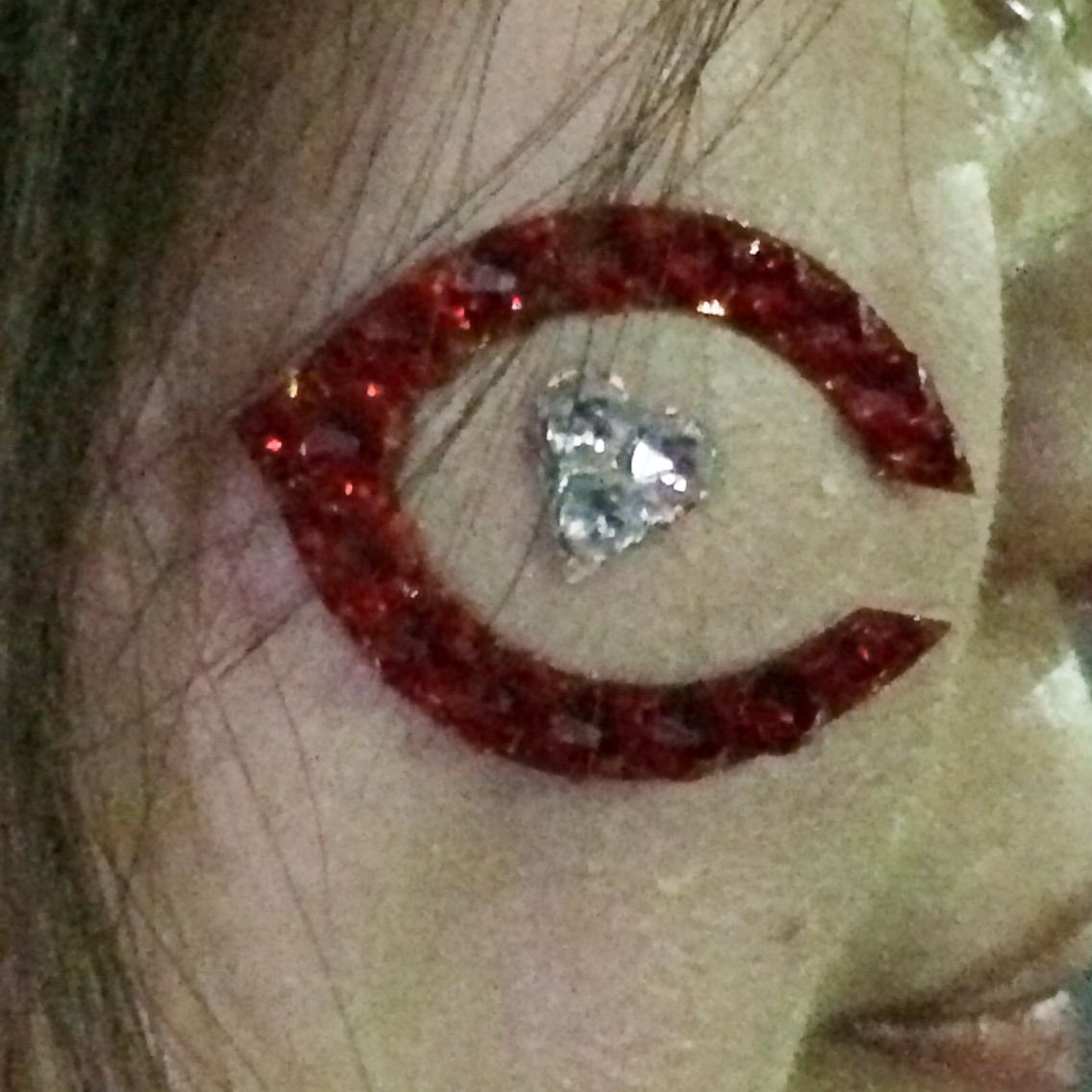 ステキなフェイスアート。スワロフスキー調。使い回しできるのかな?