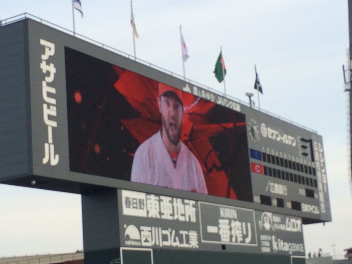 キーヤンの鯉の壁紙を、パノラマで撮影してみました。試合前、まだ誰もいない時間に、撮ってみたかったんですよねぇ(*´∀`*)