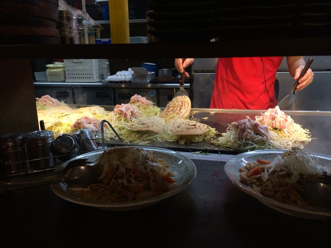 そして、バックヤードで次々と焼かれるお好み焼き…。