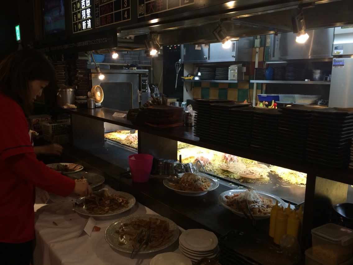 「お好み焼き、焼きあがりました〜!!」の声に、韋駄天菊池ばりにかけつけ…