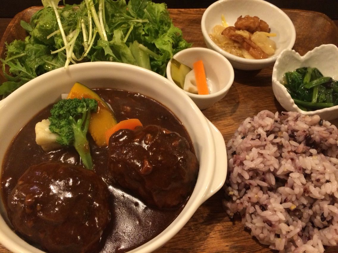 ランチは「根菜たっぷりキーマカレー」か「ごぼうれんこん煮込みハンバーグ デミグラスソース」。