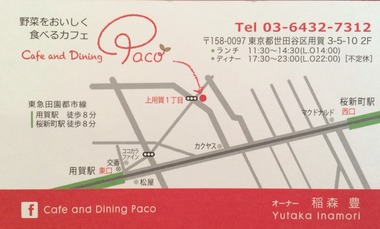 こちらのお店は、最近親しくなった芝田さんのFacebookで知りました!芝田さんは、Cafe and Dining Pacoさんのロゴデザインやチラシなどを手がけたようです。