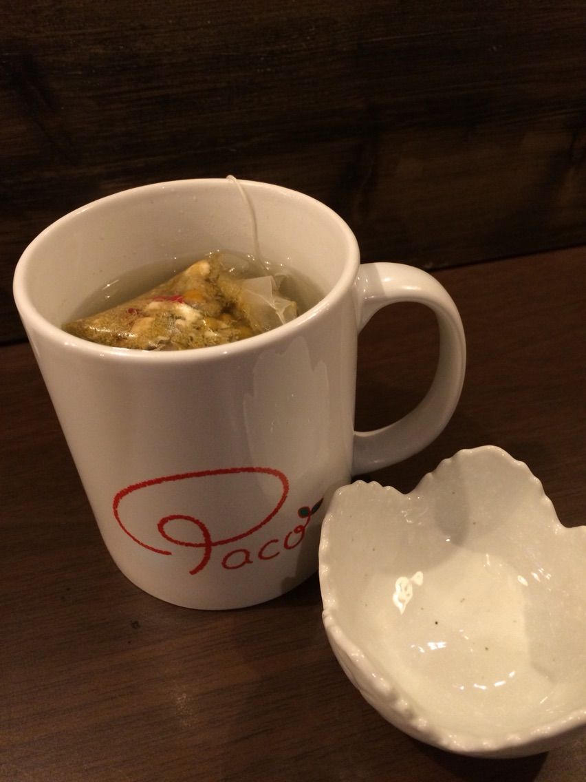 ランチの選べるドリンク、初日はカモミールジンジャーをいただきました。これを飲んで