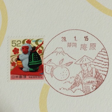 富士山、みかん、茶娘。お猿さんのお尻からみかんが生えているように押されたのも(偶然ですが…)、お気に入りポイントです。
