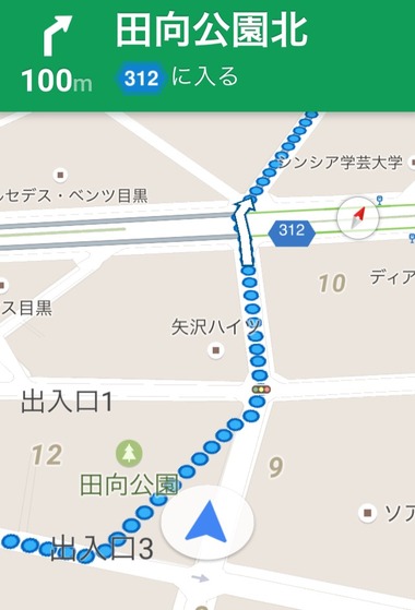 「田向公園の中を突っ切るのが最短ルート」という指示だったのですね。さすがです。