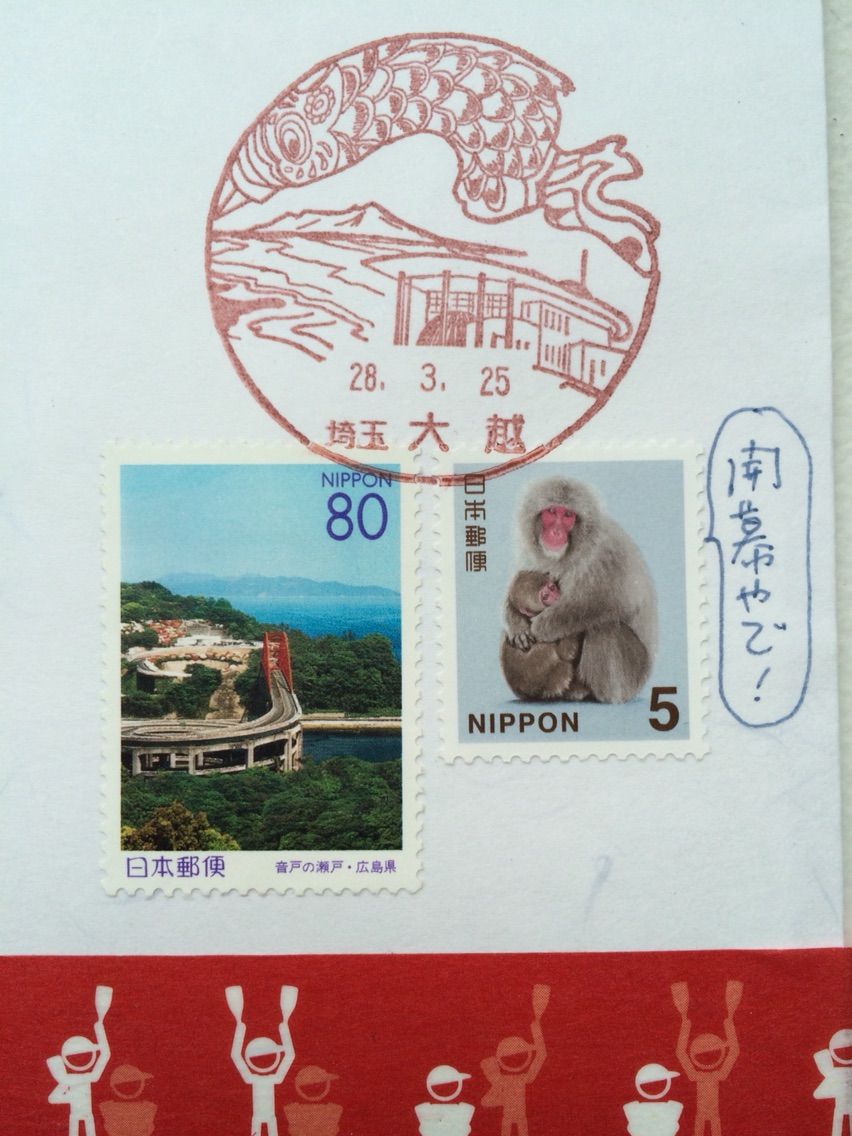ここで、この風景印の鯉のぼりのように、大空に元気よくはためくように!願いを込めて🎏