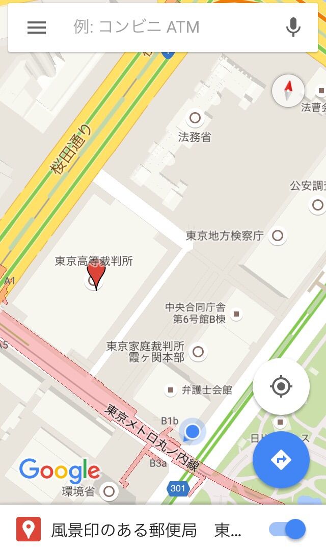 風景印のある郵便局の風景〜キンチョーの東京高等裁判所内郵便局