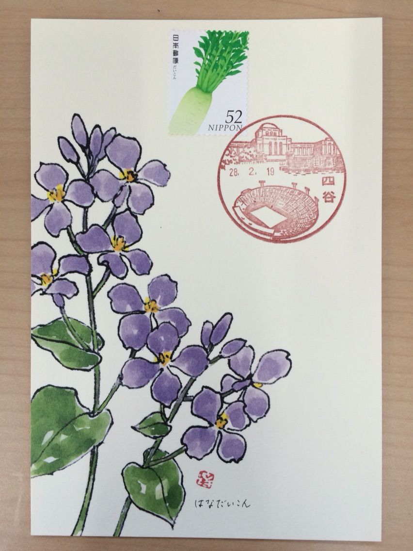 花だいこんのハガキ×大根の切手とコーディネート。特に意味はありません!