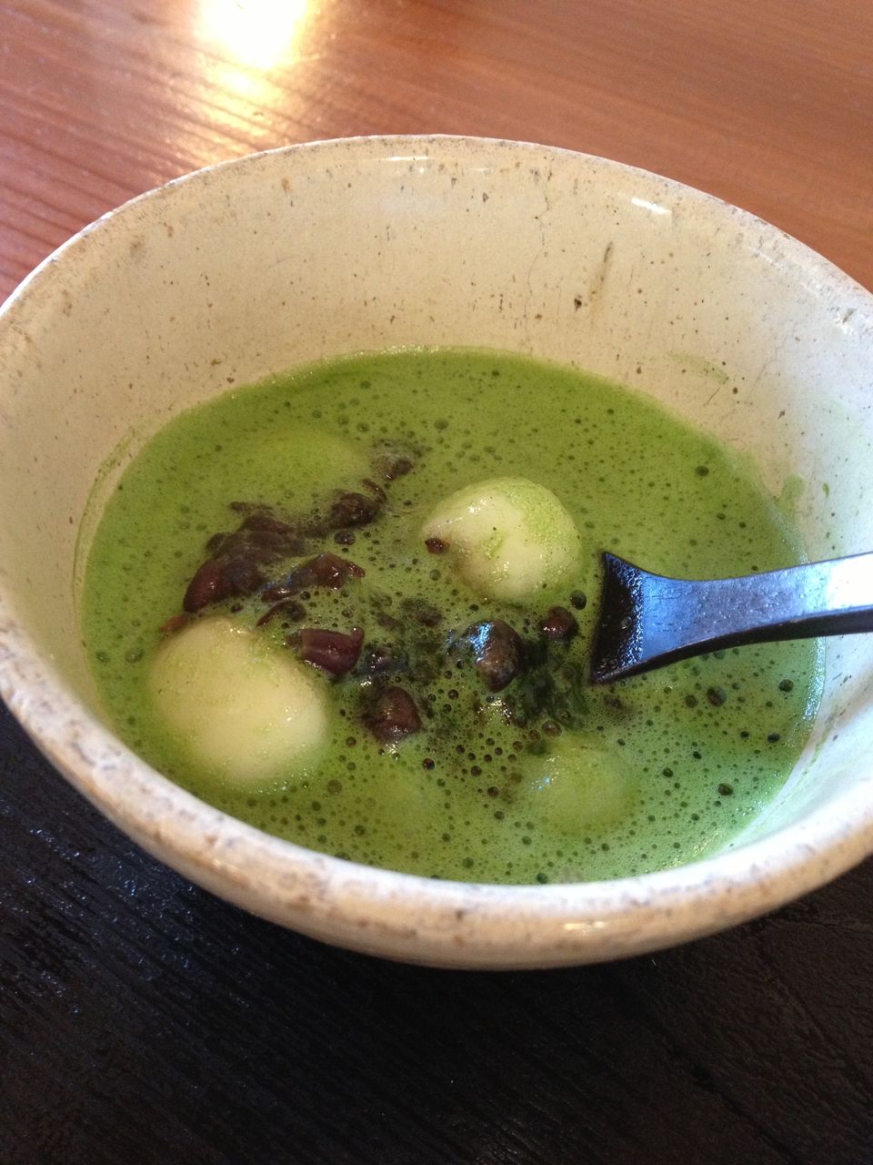 この日頂きましたのは、抹茶白玉ぜんざい。