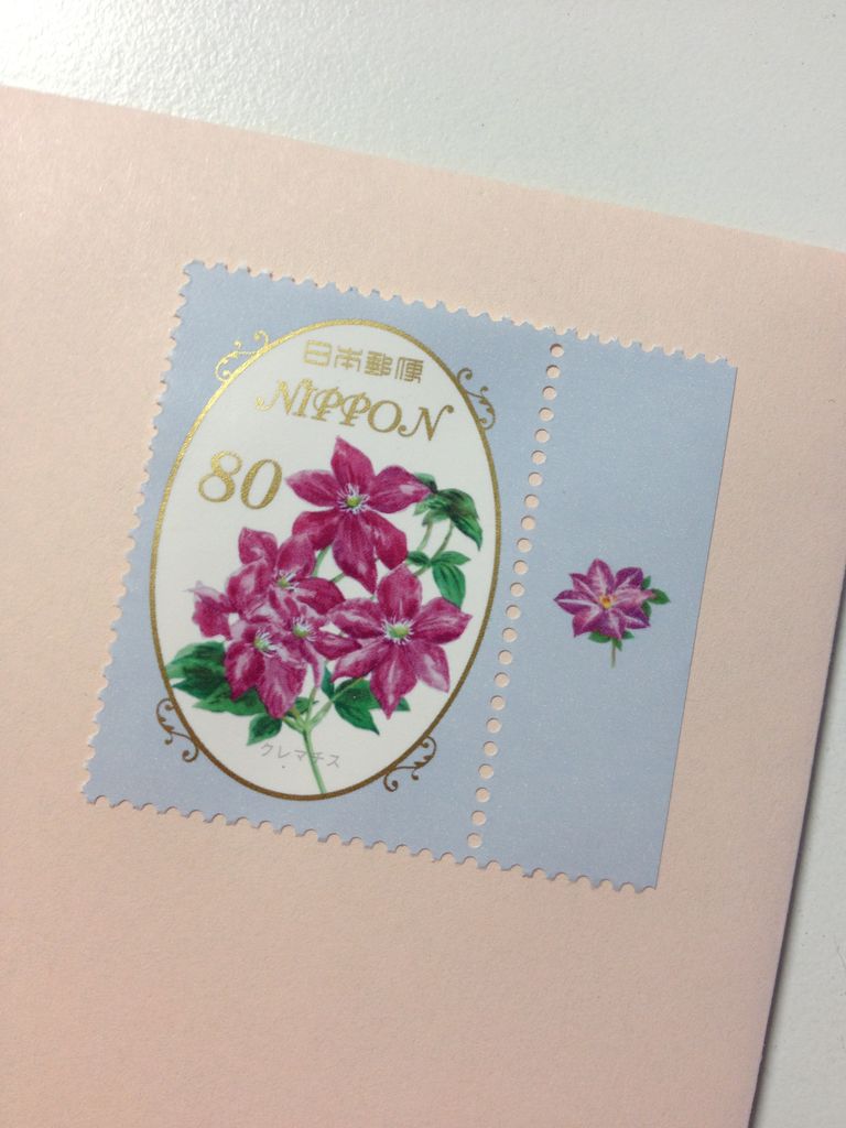 切手の裏の糊はでんぷん質だから、もしペロッとなめて貼ったら、一枚あたり2カロリーなんだって。知ってた?えっ!?がーん!!!こ、これからダイエットのために、ちゃんとスポンジで濡らして貼るようにしますぅ。