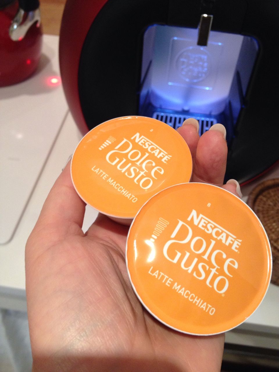 ラテ系の飲み物の場合は、カプセルを2種類使います。それぞれカプセルの蓋部には、目盛りのガイドがついています。