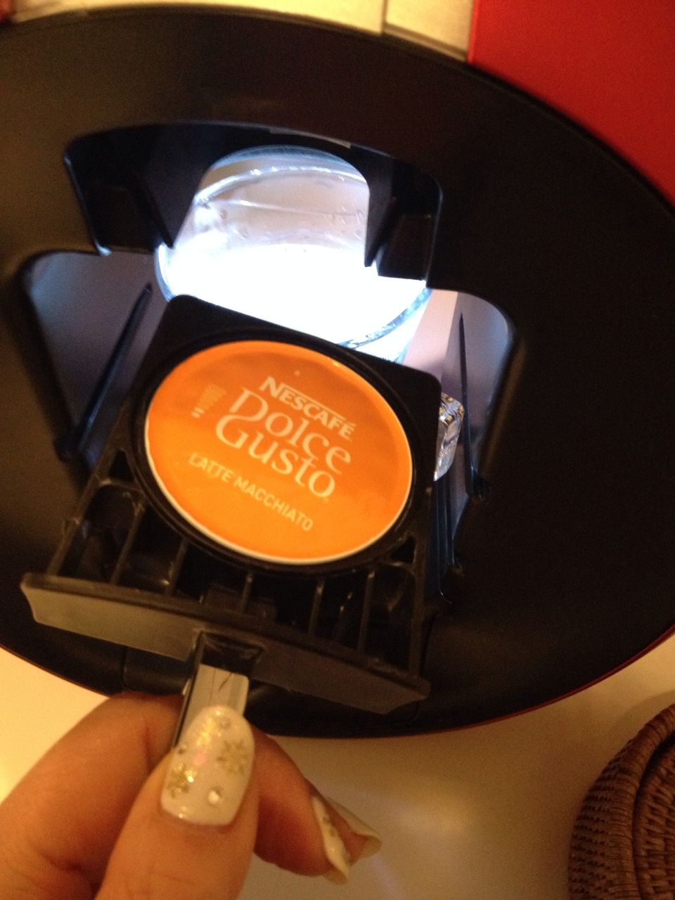 次に、コーヒーのカプセルをセット。この時、目盛りを変えるのを忘れずに…。