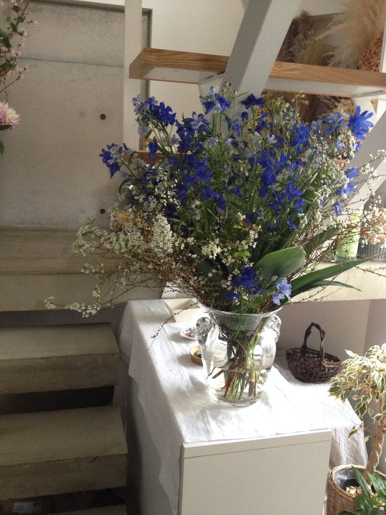 2/17〜のお花(アオモジ、デルフィニュウム、雪柳、ストック)愛嬌のある人気者にプレゼントしたいアレンジ