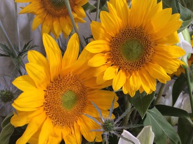 6/22〜のお花(ヒマワリ、ユリ、エリンジューム、トルコキキョウ、アワ、赤ヅル)+先週のアレンジの活け直しも!