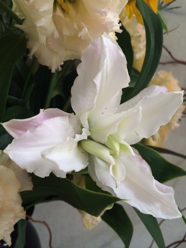 あと、先週のアレンジで使った赤ヅルを、再利用しています。赤ヅル以外も、先週から綺麗に残ったお花は、活け直してミニアレンジメントに♪
