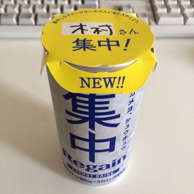 コンビニでふと目に留まったこのドリンク。“シャキッとする体感、気分を前向きにする味わい「いざ、集中!!」”のコピーについ釣られて買ってしまいました。おせっかいにも「集中しなきゃいけないあの人に差し入れしよう」という紙キャップ付き。私の名前を書いて、自分に差し入れしました。