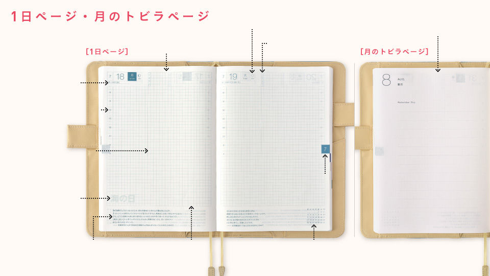 1日ページは、思いつき・やりたいことなどを、イラスト・図形・図表などとともに手書きで自由に書く欄にしています。