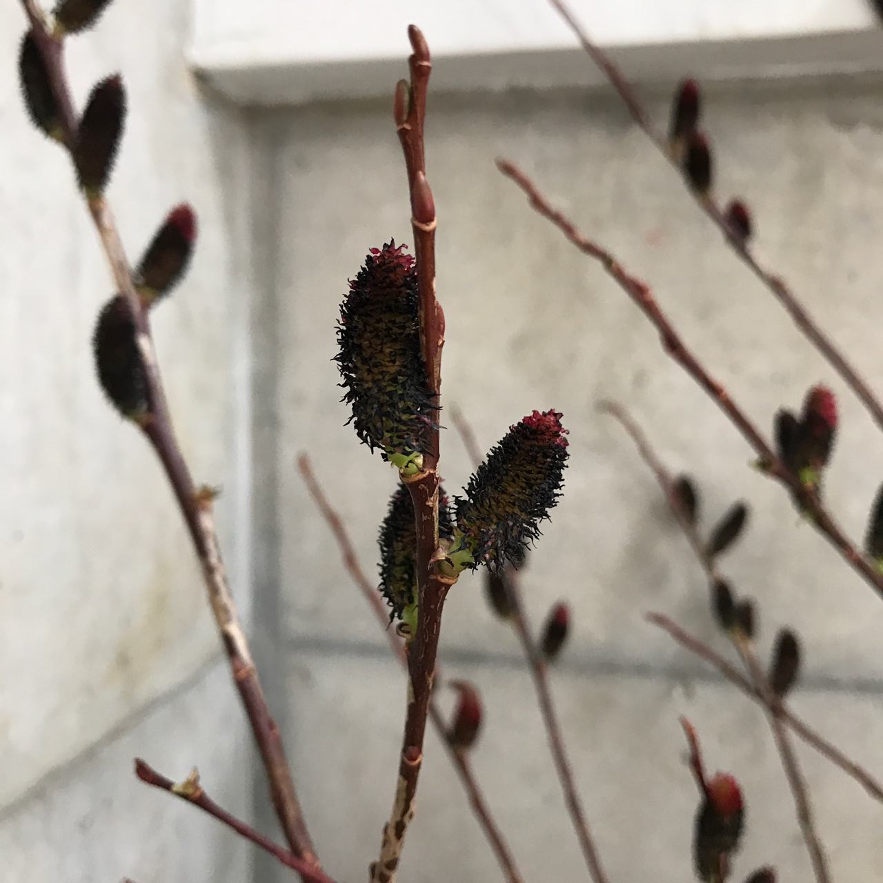 クロメヤナギ。その名のとおり、芽が黒いのが特徴のヤナギです。