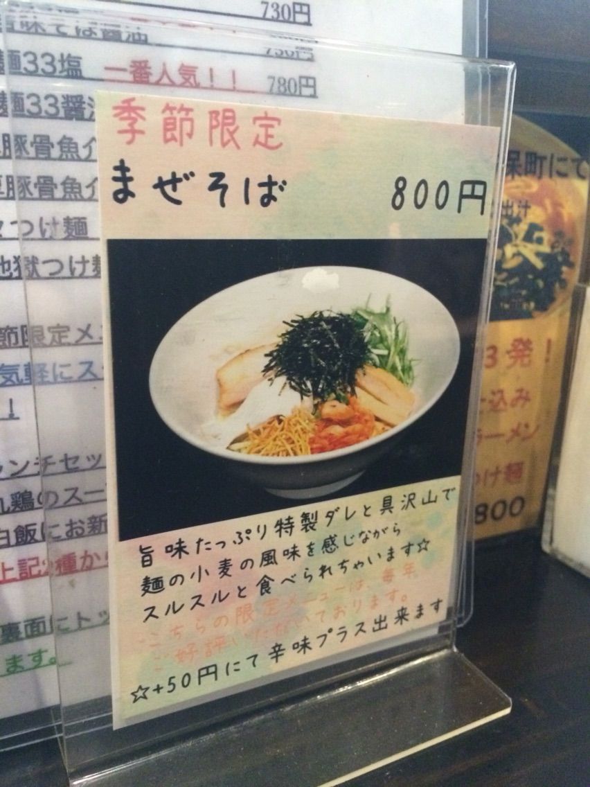 ▼メニューを見ると、季節限定のまぜそばと…