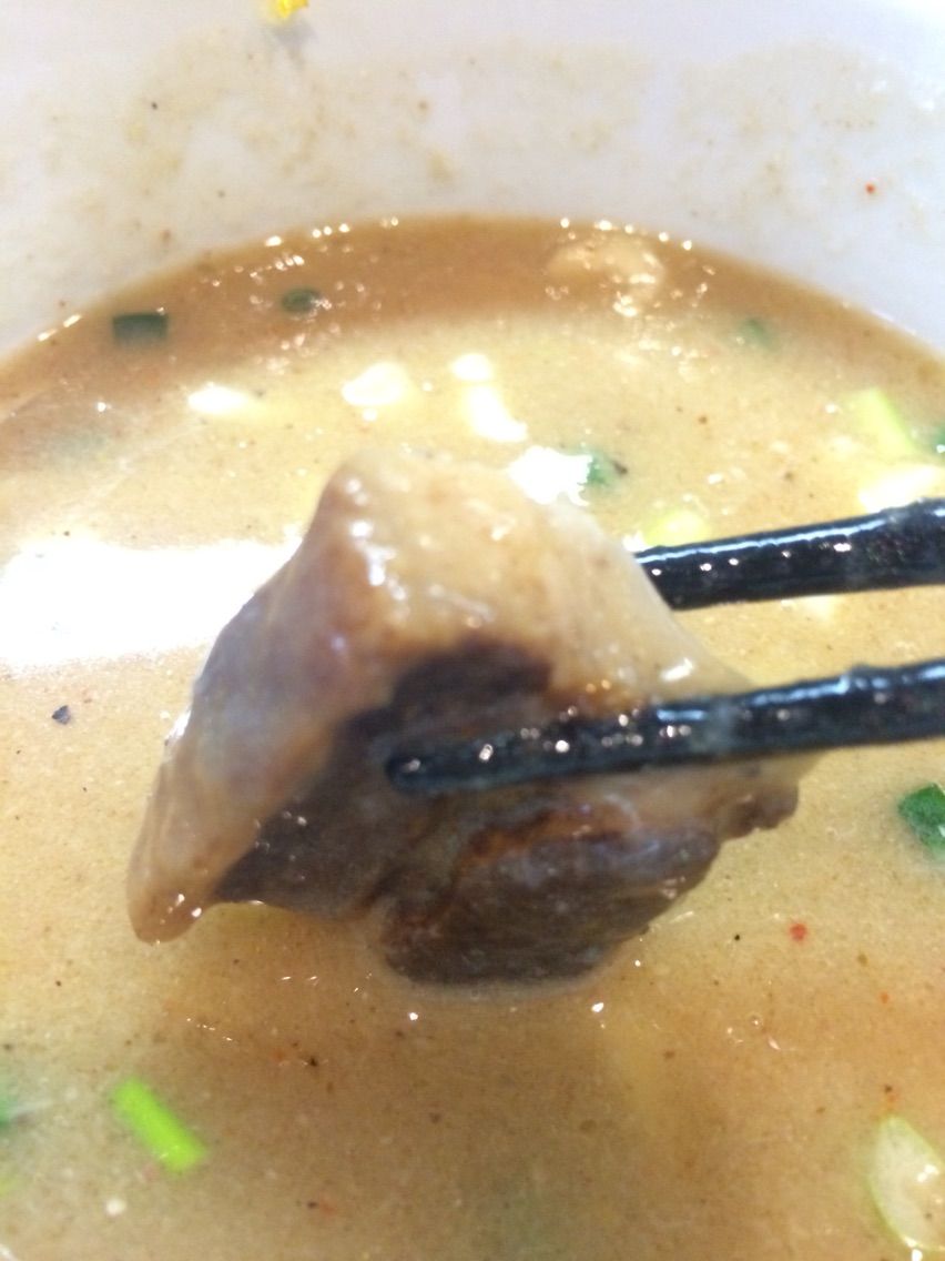 ▼つけ汁に入っている炙りコロコロチャーシューも絶品。