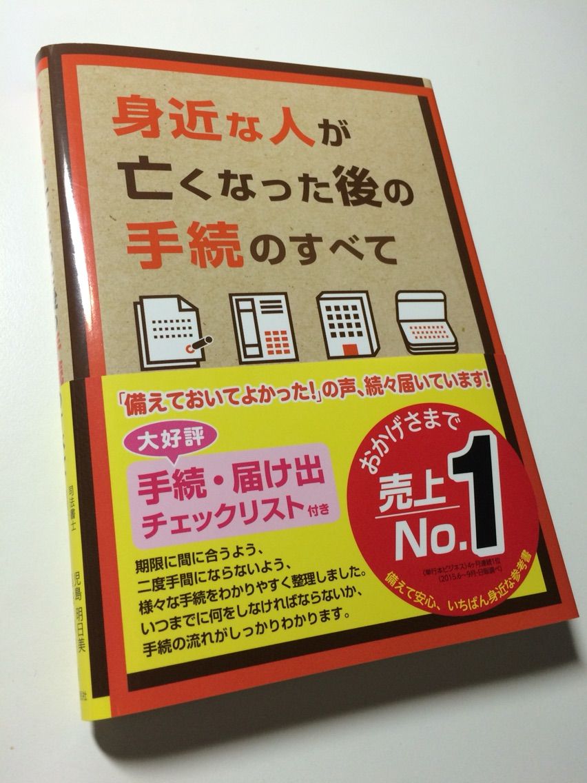 上記の1)〜3)の理由からもお分かり頂けるかと思いますが、「使える良書」であることは太鼓判です。核家族の中で過ごしてきた私たち以下の世代は、祖父母の死を身近には経験せず、親や配偶者の死でいきなり、初めて手続を経験することになります。でも、誰に手続の仕方を聞いたらいいのかわからない。そういった方が、今後増えていくことでしょう。そんな時のための「使える一冊」であることは間違いありません。